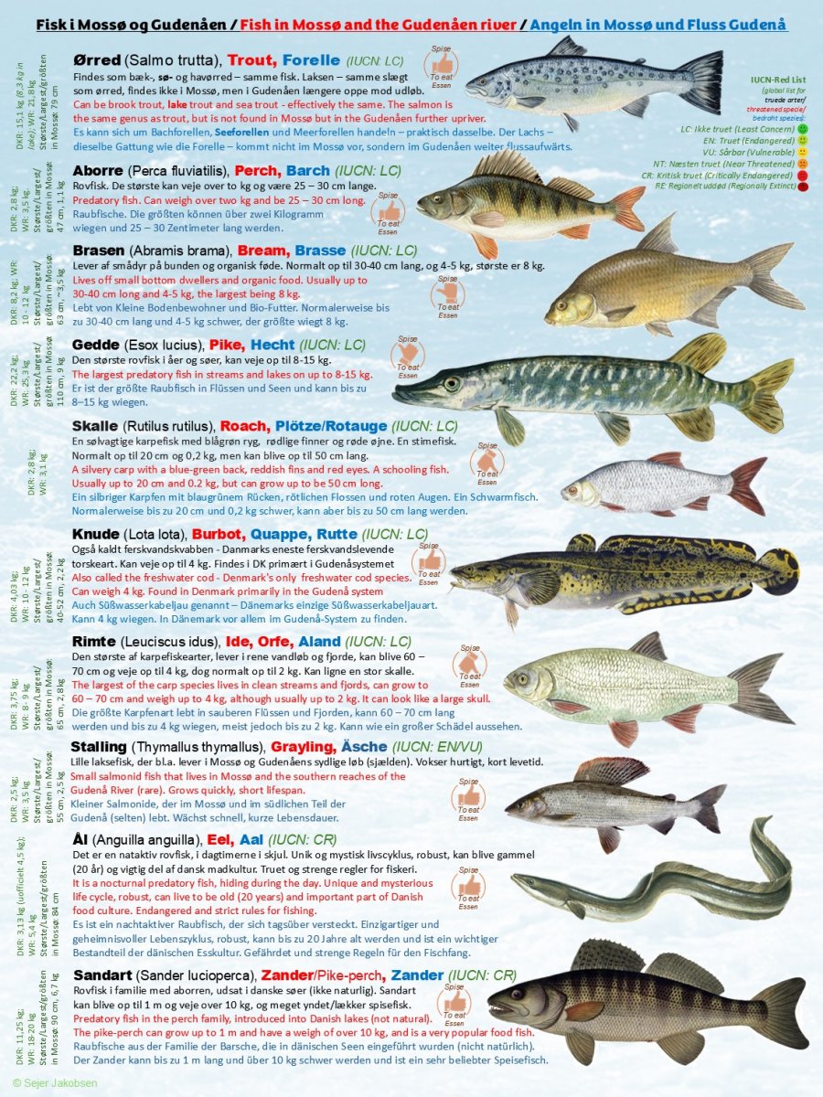 I den store sø Mossø i det midtjyske Søhøjlandet tæt på Skanderborg, findes der en betydelig artsrigdom af fisk. Antallet af varianter afhænger af kilden fra 19 til 24 arter, hvor de af os kendte her er opgjort til 21 forskellige fisk i forskellige størrelser, beskrevet i to plakater, der også ses i Hytten.