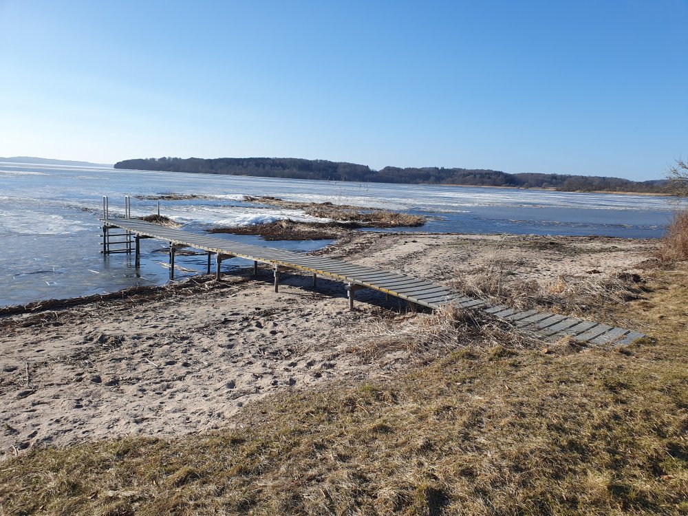 Isen er ved at forsvinde (hvis der har været is), og de år, der er is, er sivene ud for grunden helt væk i starten af foråret - lidt afhængigt af vandstanden.